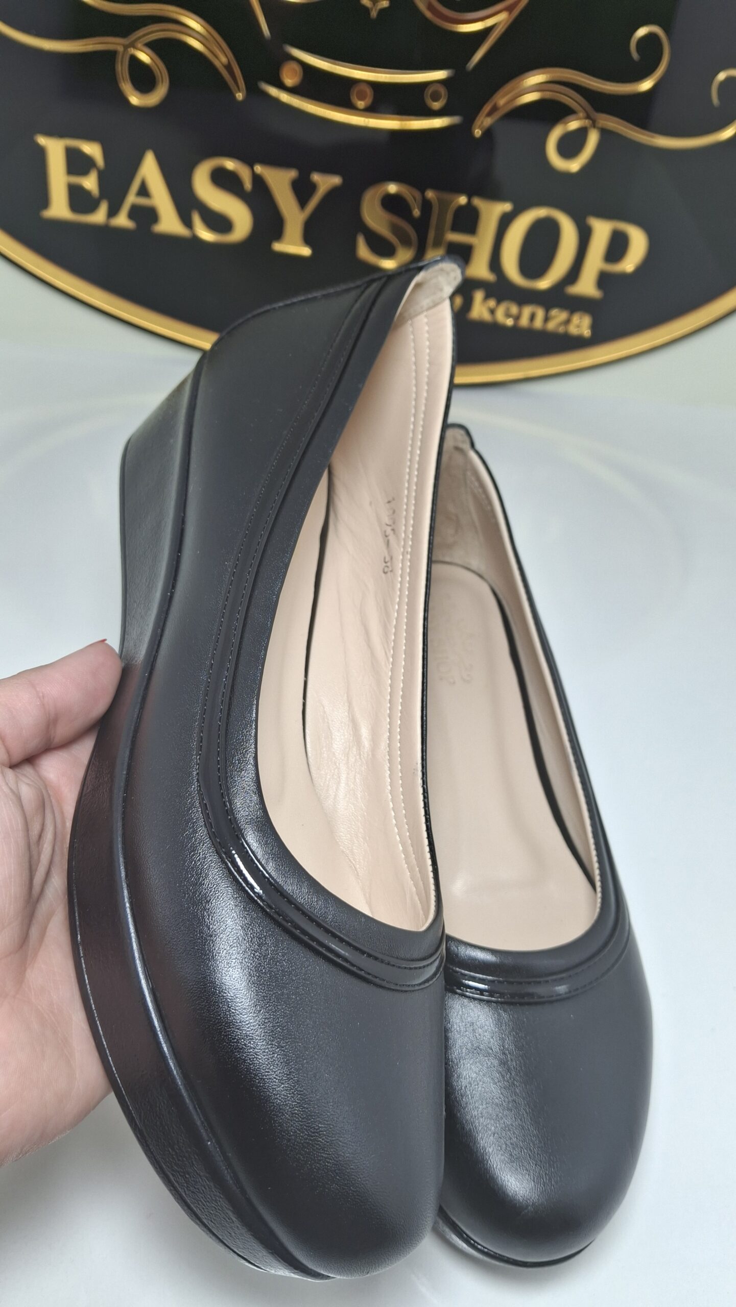 Optez pour l’élégance et le confort avec ces chaussures compensées noires, conçues en cuir véritable 100 % , avec un détail raffiné en cuir verni.
