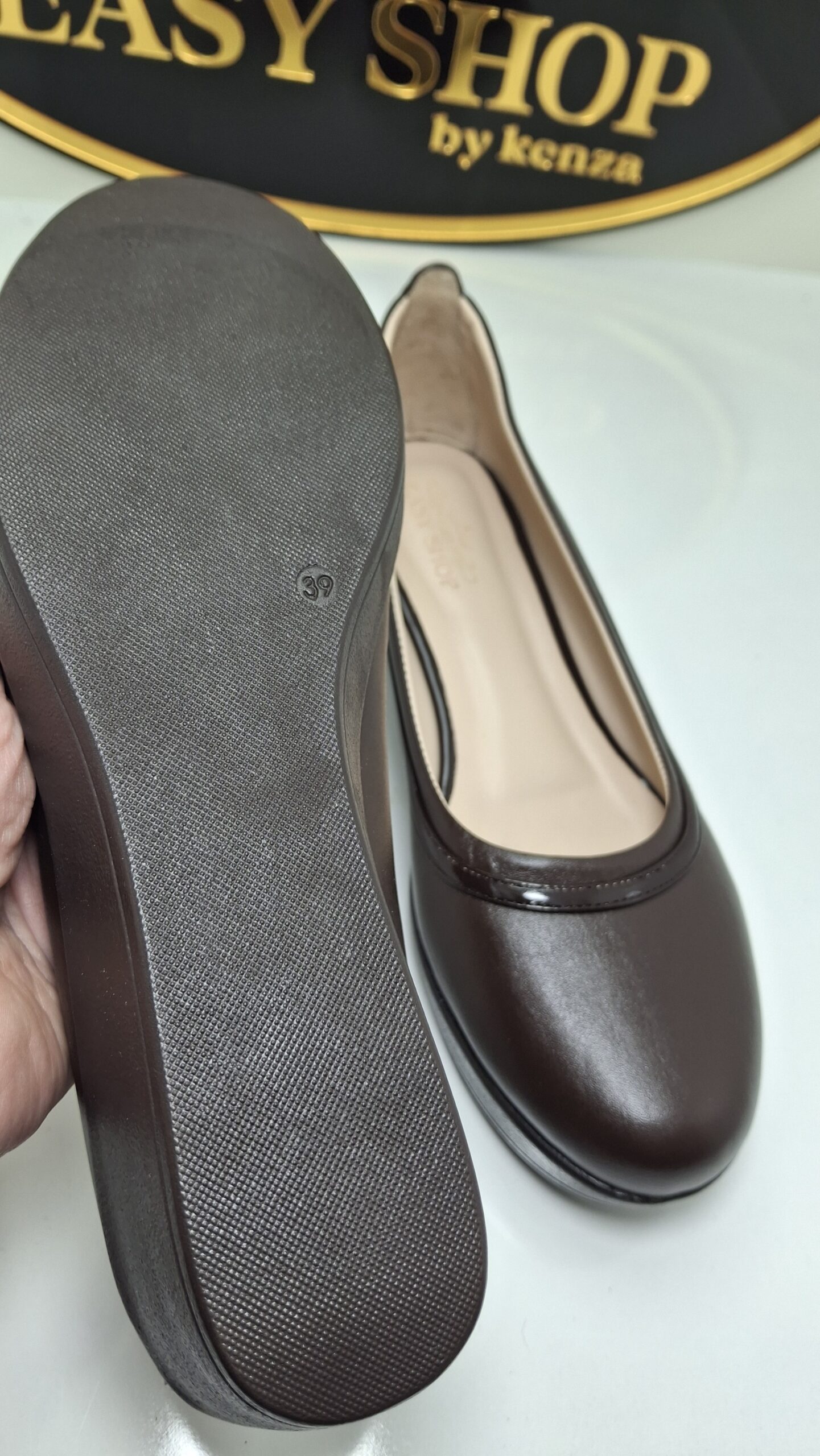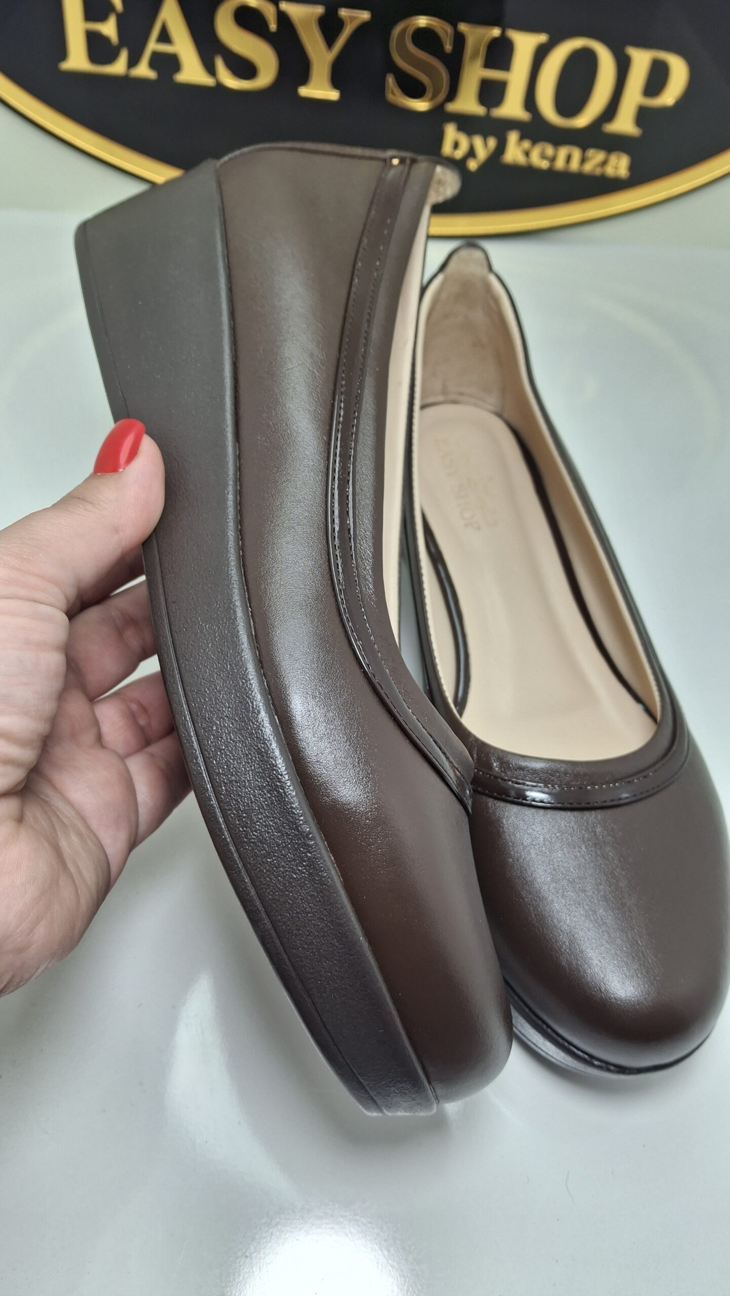 Optez pour l’élégance et le confort avec ces chaussures compensées marron, conçues en cuir véritable 100 % , avec un détail raffiné en cuir verni.