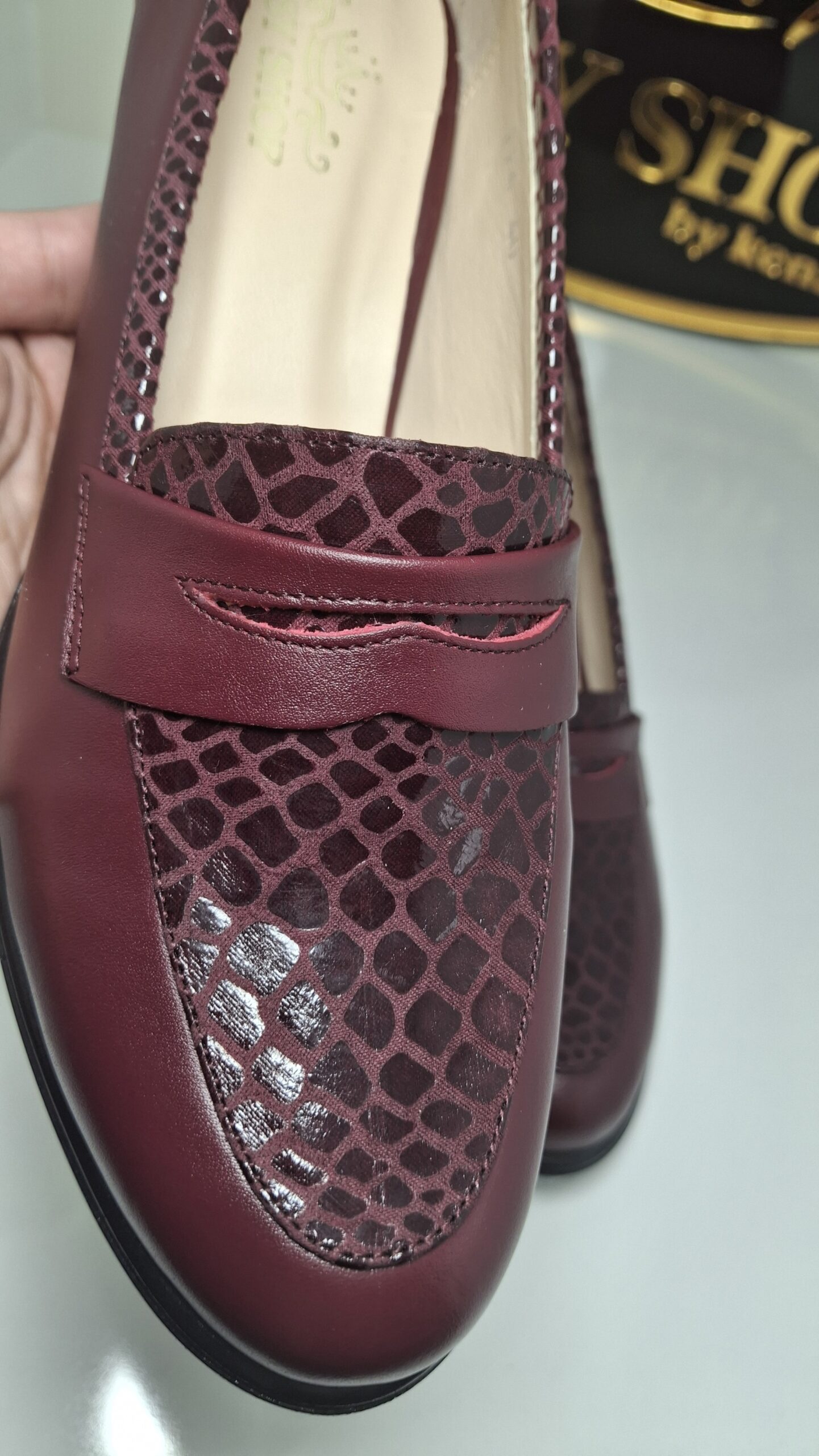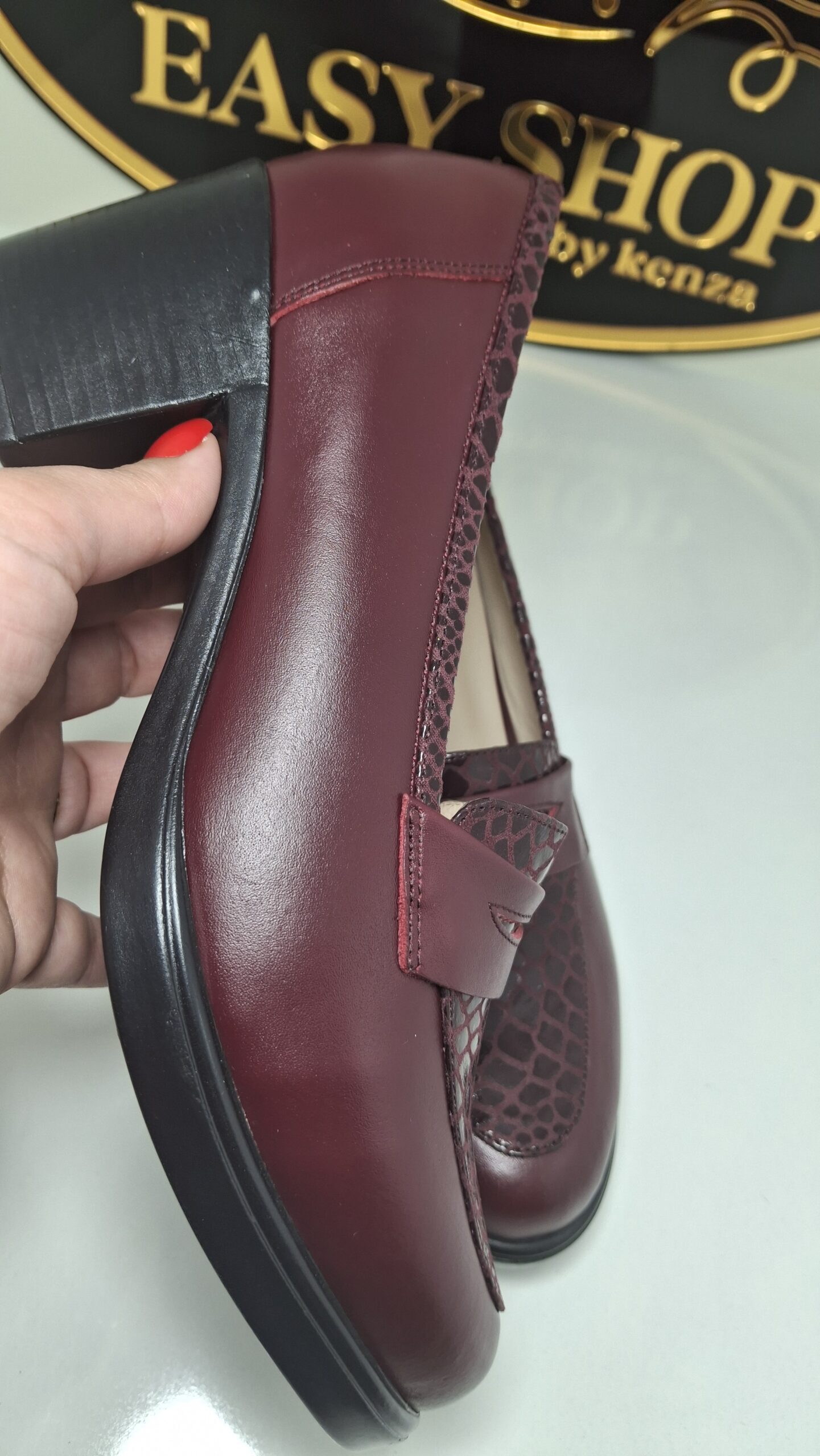 La semelle importée d’Espagne garantit durabilité et qualité. Disponible en Bordeaux, idéal pour un look élégant, raffiné et pratique à la fois.